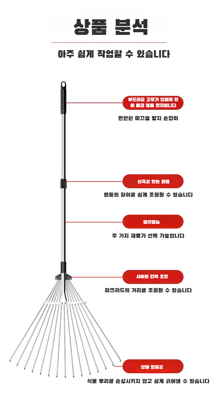 농업용 정원 도구 스테인리스 세트 잔디 갈퀴와 낙엽 갈퀴